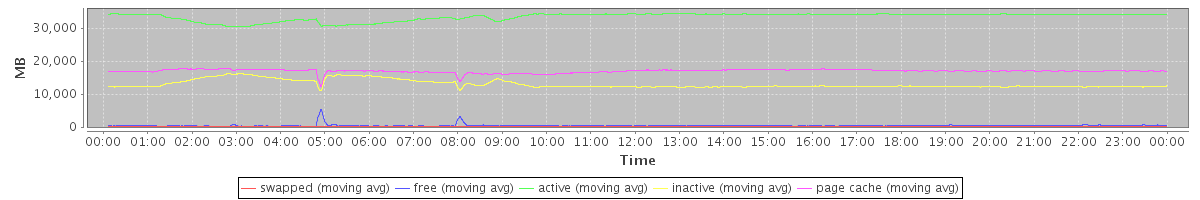 avg(swapped) = 11.98 avg(free) = 424.44 avg(active) = 33406.98 avg(inactive) = 12974.28 avg(page cache) = 16954.36