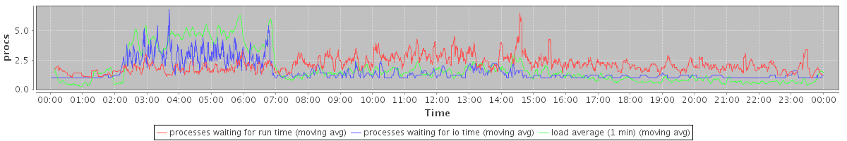 avg(processes waiting for run time) = 1.57 avg(processes waiting for io time) = 0.78 avg(load average (1 min)) = 1.78