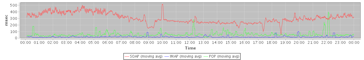 Host zm09.stanford.edu: Mailboxd: Response Time by Client Protocol