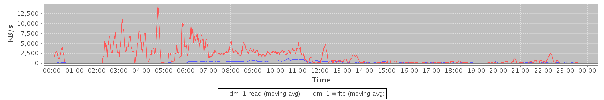 avg(dm-0 read) = 2077.22 avg(dm-0 write) = 623.26