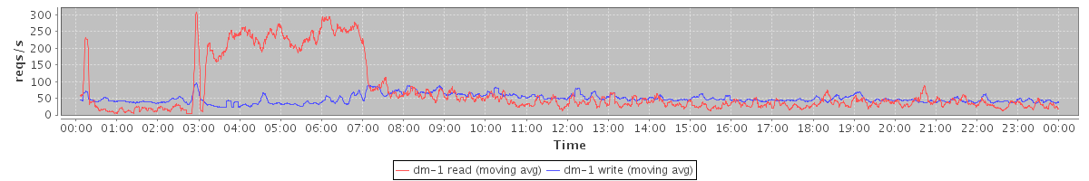 avg(dm-2 read) = 44.34 avg(dm-2 write) = 0.03
