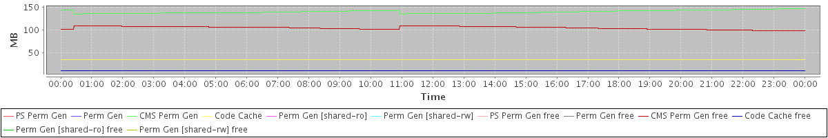 avg(PS Perm Gen) = 0.00 avg(Perm Gen) = 0.00 avg(CMS Perm Gen) = 140.74 avg(Code Cache) = 35.34 avg(Perm Gen [shared-ro]) = 0.00 avg(Perm Gen [shared-rw]) = 0.00 avg(PS Perm Gen free) = 0.00 avg(Perm Gen free) = 0.00 avg(CMS Perm Gen free) = 105.37 avg(Code Cache free) = 11.28 avg(Perm Gen [shared-ro] free) = 0.00 avg(Perm Gen [shared-rw] free) = 0.00