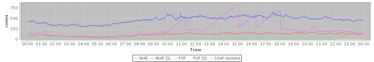avg(IMAP) = 117.12 avg(IMAP SSL) = 465.40 avg(POP) = 0.08 avg(POP SSL) = 1.24 avg(SOAP sessions) = 235.12