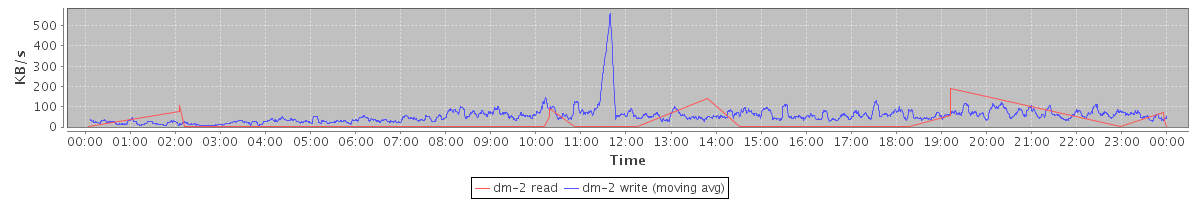 avg(dm-2 read) = 0.07 avg(dm-2 write) = 0.70