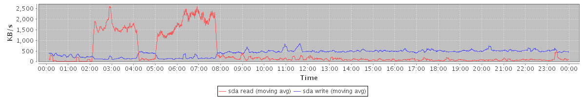 avg(sda read) = 28.65 avg(sda write) = 18.89