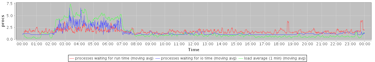 avg(processes waiting for run time) = 1.06 avg(processes waiting for io time) = 0.75 avg(load average (1 min)) = 1.58