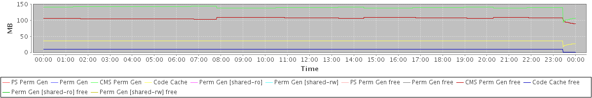 avg(PS Perm Gen) = 0.00 avg(Perm Gen) = 0.00 avg(CMS Perm Gen) = 139.92 avg(Code Cache) = 36.41 avg(Perm Gen [shared-ro]) = 0.00 avg(Perm Gen [shared-rw]) = 0.00 avg(PS Perm Gen free) = 0.00 avg(Perm Gen free) = 0.00 avg(CMS Perm Gen free) = 106.90 avg(Code Cache free) = 9.70 avg(Perm Gen [shared-ro] free) = 0.00 avg(Perm Gen [shared-rw] free) = 0.00