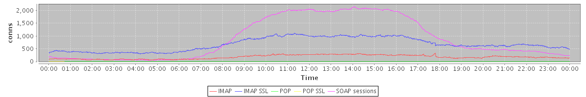 avg(IMAP) = 178.18 avg(IMAP SSL) = 676.11 avg(POP) = 0.10 avg(POP SSL) = 1.57 avg(SOAP sessions) = 882.97