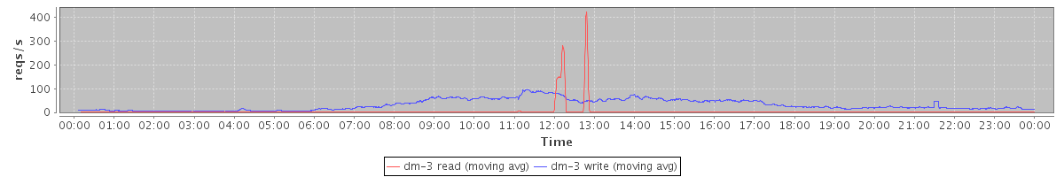 avg(dm-3 read) = 319.49 avg(dm-3 write) = 592.26