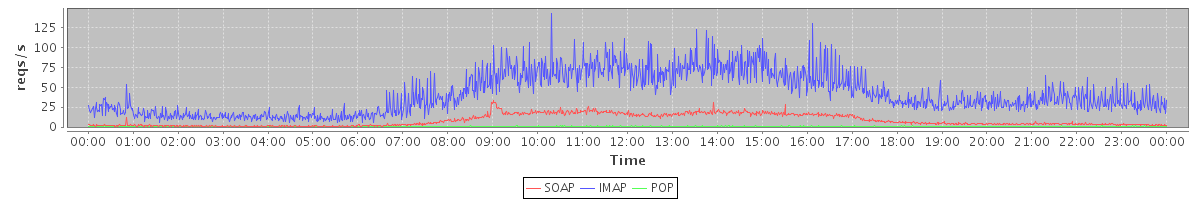 Host zm21.stanford.edu: Mailboxd: Request Rate by Client Protocol