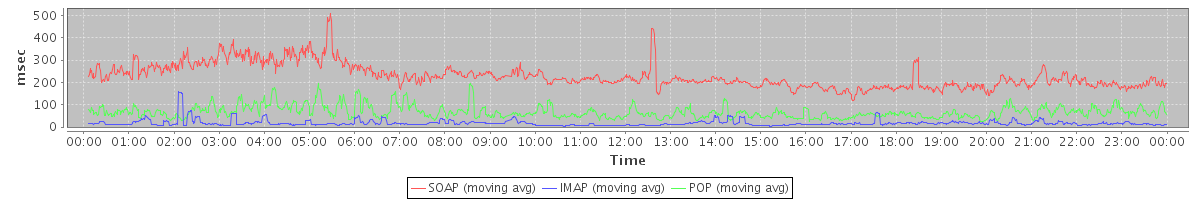 Host zm01.stanford.edu: Mailboxd: Response Time by Client Protocol
