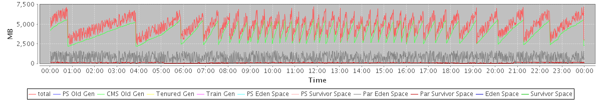 avg(total) = 4854.37 avg(PS Old Gen) = 0.00 avg(CMS Old Gen) = 3969.58 avg(Tenured Gen) = 0.00 avg(Train Gen) = 0.00 avg(PS Eden Space) = 0.00 avg(PS Survivor Space) = 0.00 avg(Par Eden Space) = 787.70 avg(Par Survivor Space) = 97.09 avg(Eden Space) = 0.00 avg(Survivor Space) = 0.00