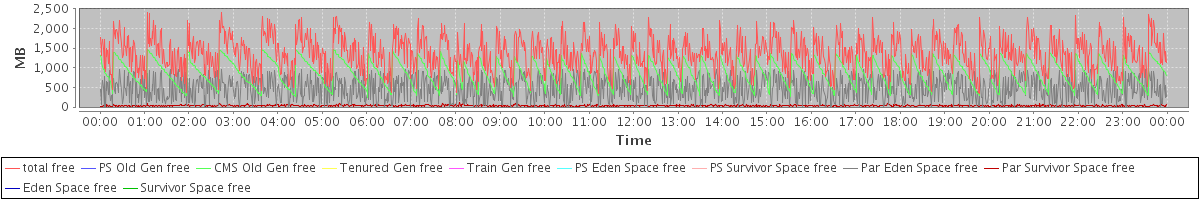 avg(total free) = 1357.63 avg(PS Old Gen free) = 0.00 avg(CMS Old Gen free) = 845.72 avg(Tenured Gen free) = 0.00 avg(Train Gen free) = 0.00 avg(PS Eden Space free) = 0.00 avg(PS Survivor Space free) = 0.00 avg(Par Eden Space free) = 478.75 avg(Par Survivor Space free) = 33.16 avg(Eden Space free) = 0.00 avg(Survivor Space free) = 0.00