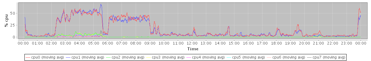 avg(cpu0) = 0.92 avg(cpu1) = 0.86 avg(cpu2) = 0.49 avg(cpu3) = 0.41 avg(cpu4) = 0.42 avg(cpu5) = 0.36 avg(cpu6) = 0.20 avg(cpu7) = 0.13