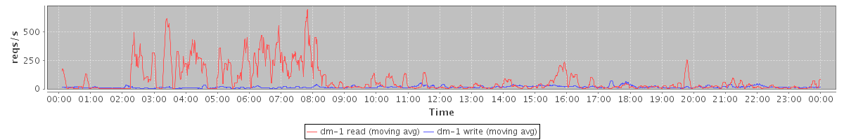 avg(dm-2 read) = 0.09 avg(dm-2 write) = 0.83