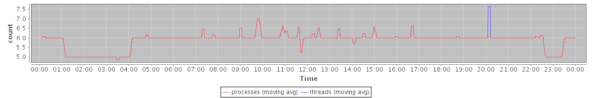 avg(processes) = 5.87 avg(threads) = 5.88