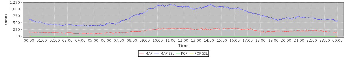 avg(IMAP) = 195.09 avg(IMAP SSL) = 745.58 avg(POP) = 0.11 avg(POP SSL) = 1.16