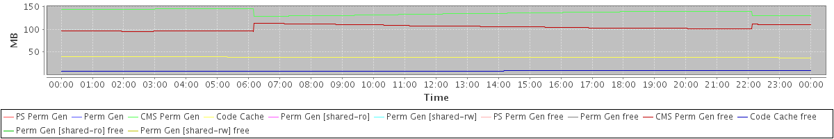 avg(PS Perm Gen) = 0.00 avg(Perm Gen) = 0.00 avg(CMS Perm Gen) = 137.17 avg(Code Cache) = 38.43 avg(Perm Gen [shared-ro]) = 0.00 avg(Perm Gen [shared-rw]) = 0.00 avg(PS Perm Gen free) = 0.00 avg(Perm Gen free) = 0.00 avg(CMS Perm Gen free) = 103.83 avg(Code Cache free) = 8.20 avg(Perm Gen [shared-ro] free) = 0.00 avg(Perm Gen [shared-rw] free) = 0.00