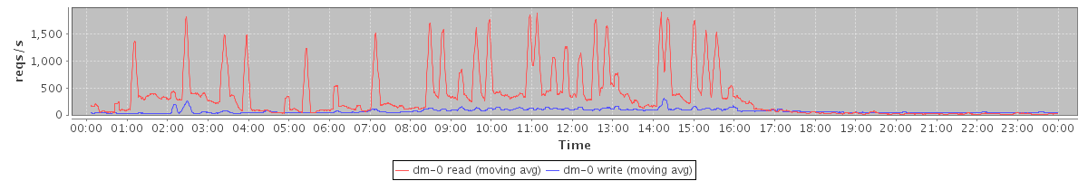 avg(dm-1 read) = 0.03 avg(dm-1 write) = 1.33