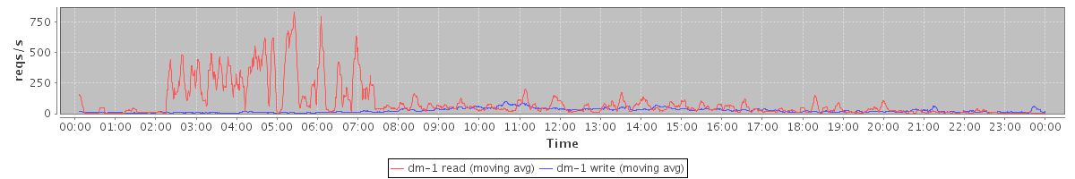 avg(dm-1 read) = 1407.49 avg(dm-1 write) = 398.32