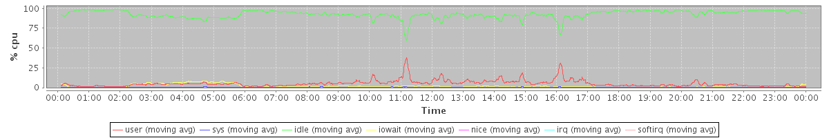 avg(user) = 5.15 avg(sys) = 0.43 avg(idle) = 92.55 avg(iowait) = 1.80 avg(nice) = 0.00 avg(irq) = 0.00 avg(softirq) = 0.05