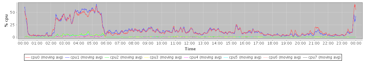 avg(cpu0) = 1.01 avg(cpu1) = 0.96 avg(cpu2) = 0.66 avg(cpu3) = 0.57 avg(cpu4) = 0.52 avg(cpu5) = 0.51 avg(cpu6) = 0.32 avg(cpu7) = 0.23