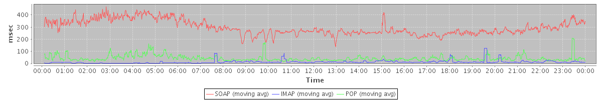 Host zm07.stanford.edu: Mailboxd: Response Time by Client Protocol