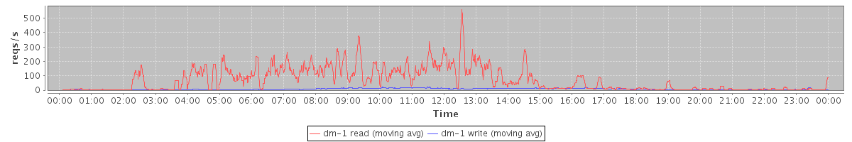 avg(dm-1 read) = 2454.44 avg(dm-1 write) = 218.48
