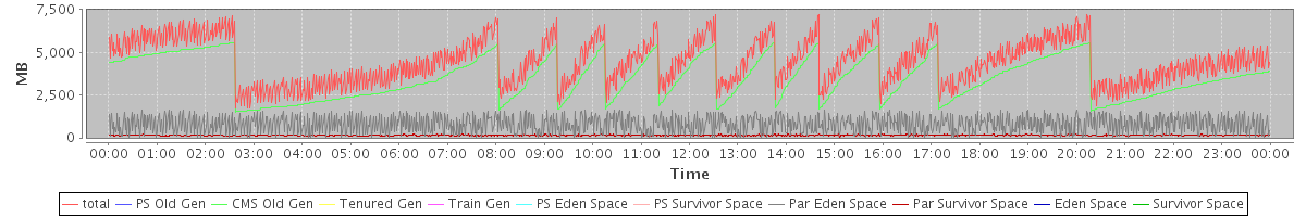 avg(total) = 4450.69 avg(PS Old Gen) = 0.00 avg(CMS Old Gen) = 3497.69 avg(Tenured Gen) = 0.00 avg(Train Gen) = 0.00 avg(PS Eden Space) = 0.00 avg(PS Survivor Space) = 0.00 avg(Par Eden Space) = 804.30 avg(Par Survivor Space) = 148.69 avg(Eden Space) = 0.00 avg(Survivor Space) = 0.00