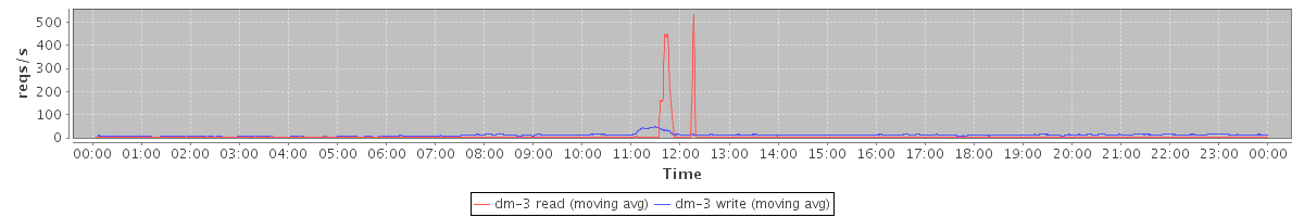 avg(dm-3 read) = 3.67 avg(dm-3 write) = 11.13