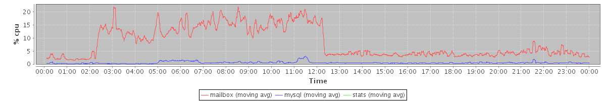 avg(mailbox) = 8.31 avg(mysql) = 0.55 avg(stats) = 0.00