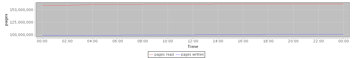 avg(pages read) = 161077289.39 avg(pages written) = 99885050.91