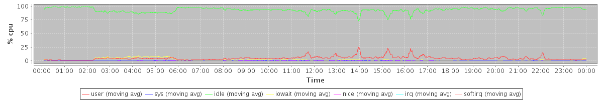 avg(user) = 4.68 avg(sys) = 0.43 avg(idle) = 93.03 avg(iowait) = 1.81 avg(nice) = 0.00 avg(irq) = 0.00 avg(softirq) = 0.05