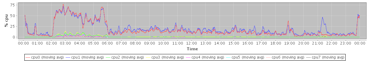 avg(cpu0) = 0.18 avg(cpu1) = 0.25 avg(cpu2) = 0.09 avg(cpu3) = 0.18 avg(cpu4) = 0.11 avg(cpu5) = 0.16 avg(cpu6) = 0.04 avg(cpu7) = 0.11