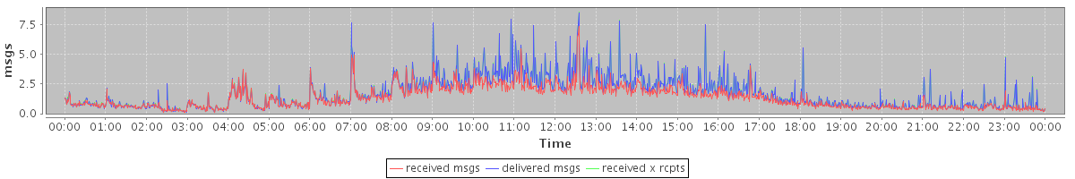 avg(received msgs) = 1.33 avg(delivered msgs) = 1.67 avg(received x rcpts) = 1.69