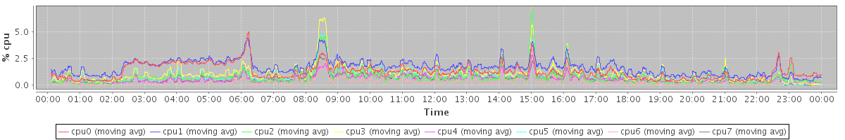 avg(cpu0) = 1.24 avg(cpu1) = 1.65 avg(cpu2) = 0.75 avg(cpu3) = 1.07 avg(cpu4) = 0.59 avg(cpu5) = 0.85 avg(cpu6) = 0.30 avg(cpu7) = 0.61