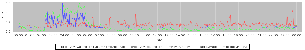 avg(processes waiting for run time) = 1.08 avg(processes waiting for io time) = 0.60 avg(load average (1 min)) = 1.35