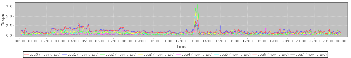 avg(cpu0) = 1.01 avg(cpu1) = 1.03 avg(cpu2) = 0.57 avg(cpu3) = 0.59 avg(cpu4) = 0.33 avg(cpu5) = 0.38 avg(cpu6) = 0.39 avg(cpu7) = 0.20