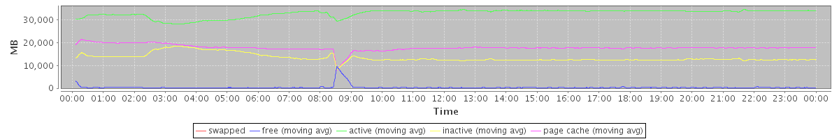 avg(swapped) = 0.00 avg(free) = 452.14 avg(active) = 32930.64 avg(inactive) = 13415.04 avg(page cache) = 17818.05