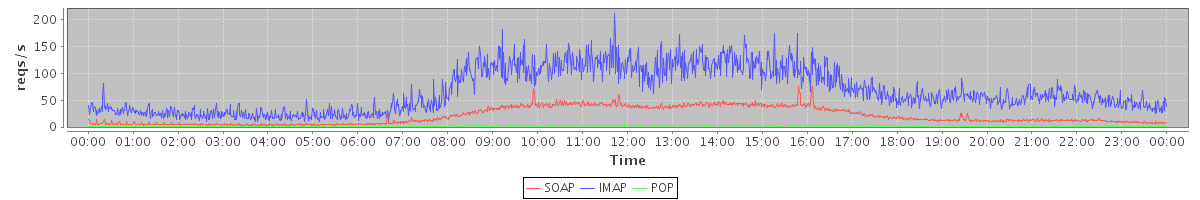 Host zm06.stanford.edu: Mailboxd: Request Rate by Client Protocol