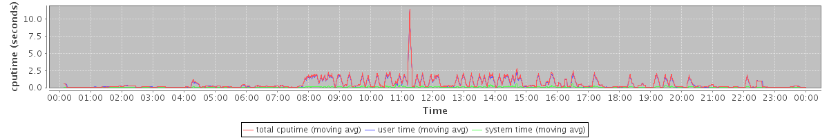 avg(updatedb) = 35.24 avg(java) = 2189.89 avg(gzip) = 2690.81 avg(mysqld) = 510.13 avg(perl) = 45.97 avg(httpd) = 52.04 avg(mysqldump) = 153.38 avg(zmmailboxd) = 3290.87 avg(horsewatcher-fe) = 51.77 avg(zmcompresslogs) = 1374.75