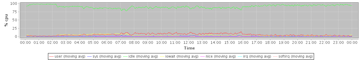 avg(user) = 5.64 avg(sys) = 0.77 avg(idle) = 90.62 avg(iowait) = 2.87 avg(nice) = 0.00 avg(irq) = 0.00 avg(softirq) = 0.09