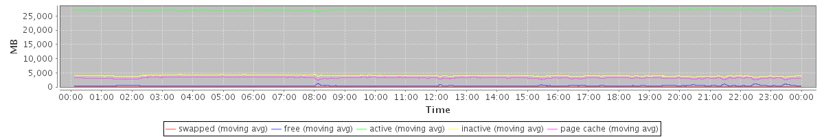 avg(swapped) = 87.49 avg(free) = 415.94 avg(active) = 27086.49 avg(inactive) = 3963.77 avg(page cache) = 3184.37