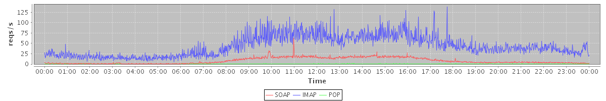 Host zm21.stanford.edu: Mailboxd: Request Rate by Client Protocol