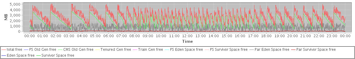 avg(total free) = 2827.00 avg(PS Old Gen free) = 0.00 avg(CMS Old Gen free) = 1958.14 avg(Tenured Gen free) = 0.00 avg(Train Gen free) = 0.00 avg(PS Eden Space free) = 0.00 avg(PS Survivor Space free) = 0.00 avg(Par Eden Space free) = 791.03 avg(Par Survivor Space free) = 77.83 avg(Eden Space free) = 0.00 avg(Survivor Space free) = 0.00