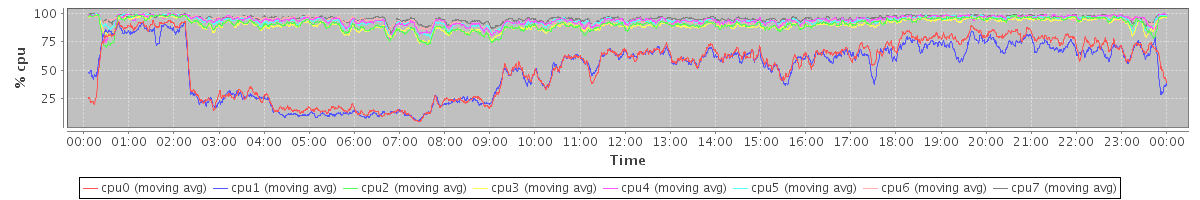 avg(cpu0) = 0.32 avg(cpu1) = 0.29 avg(cpu2) = 0.16 avg(cpu3) = 0.16 avg(cpu4) = 0.10 avg(cpu5) = 0.11 avg(cpu6) = 0.12 avg(cpu7) = 0.07