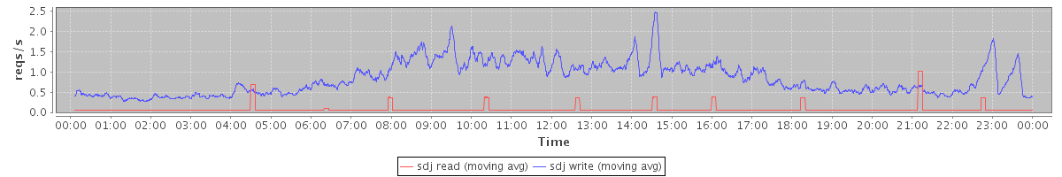 avg(sdj read) = 0.28 avg(sdj write) = 186.61