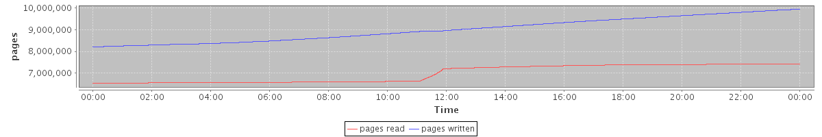 avg(pages read) = 6971147.90 avg(pages written) = 9007414.71