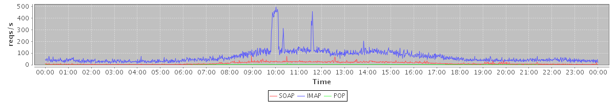 Host zm03.stanford.edu: Mailboxd: Request Rate by Client Protocol