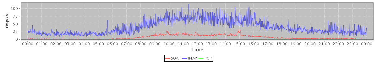 Host zm21.stanford.edu: Mailboxd: Request Rate by Client Protocol